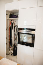 Liebevolle Lichtsetzungen sowie praktische Details runden diese Wohnung ab. Wie wäre es zB mit täglich frisch gemachten Eiswürfeln im Sommer? Die im neuen Kühlschrank integrierte Eiswürfelmaschine machts möglich!